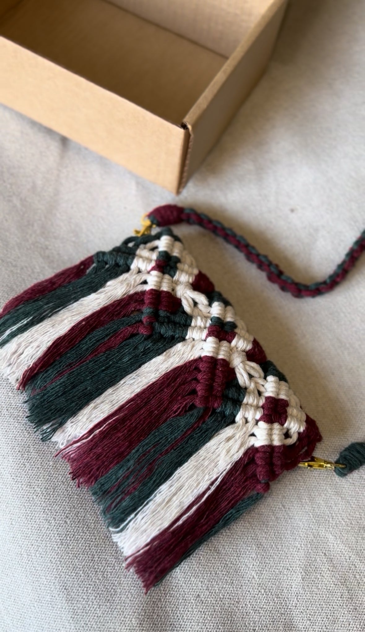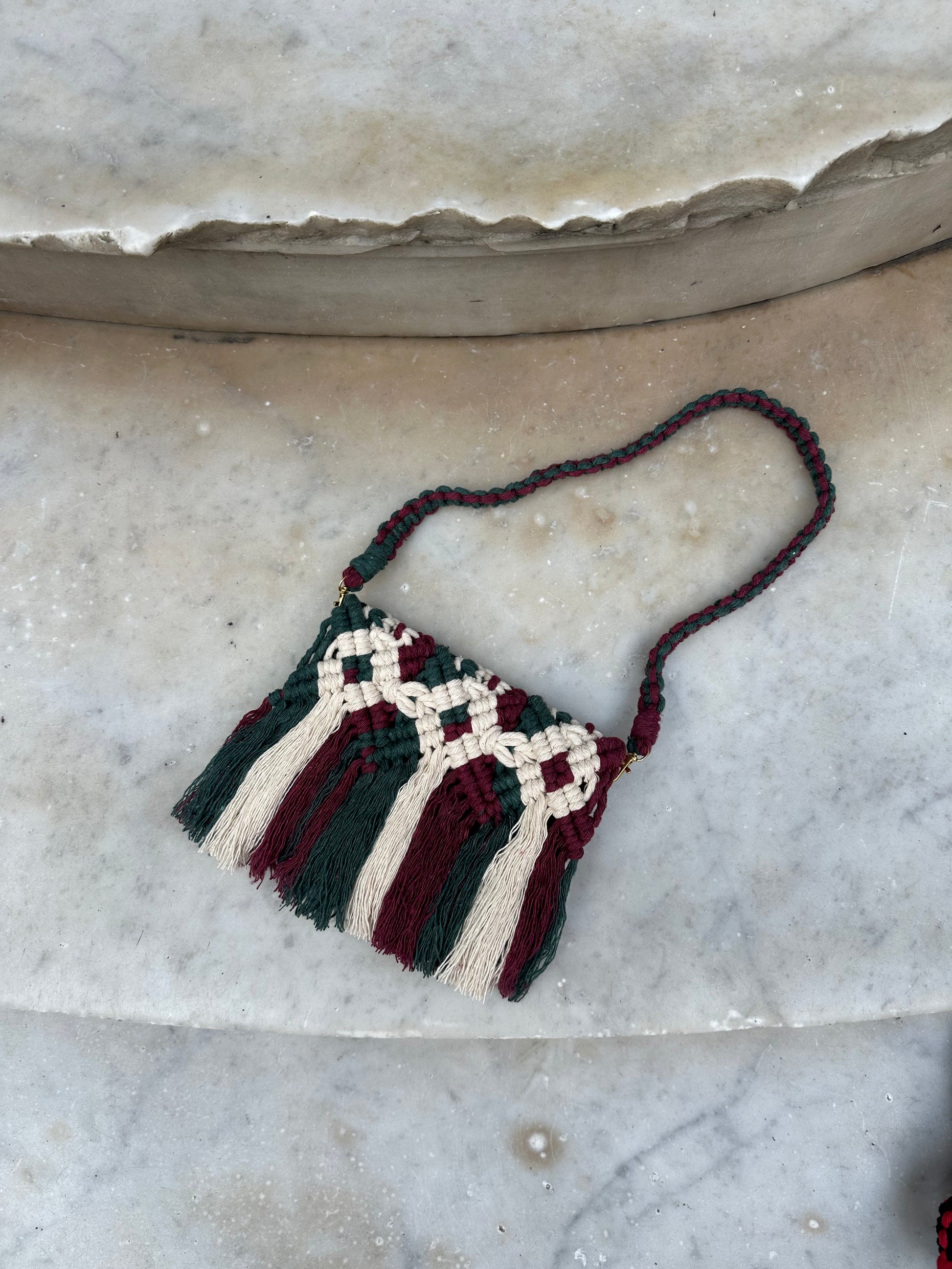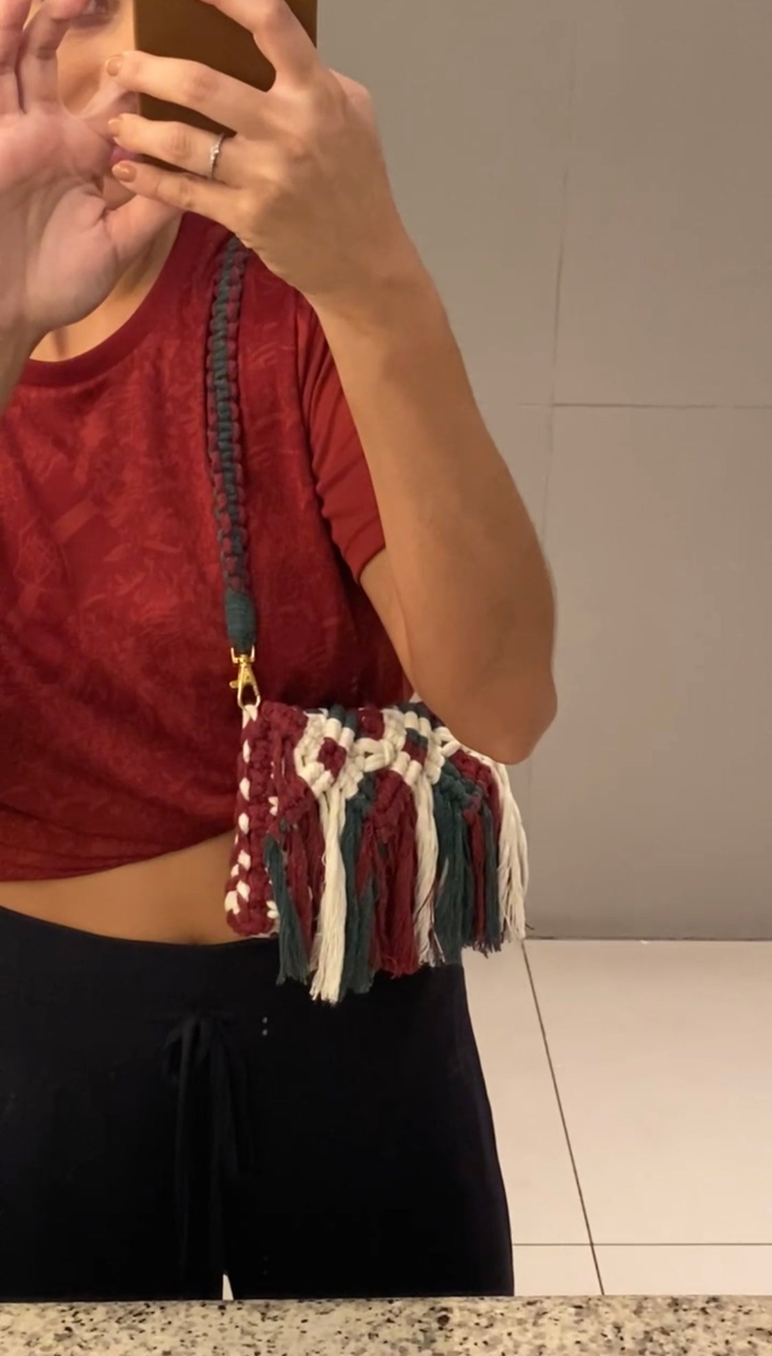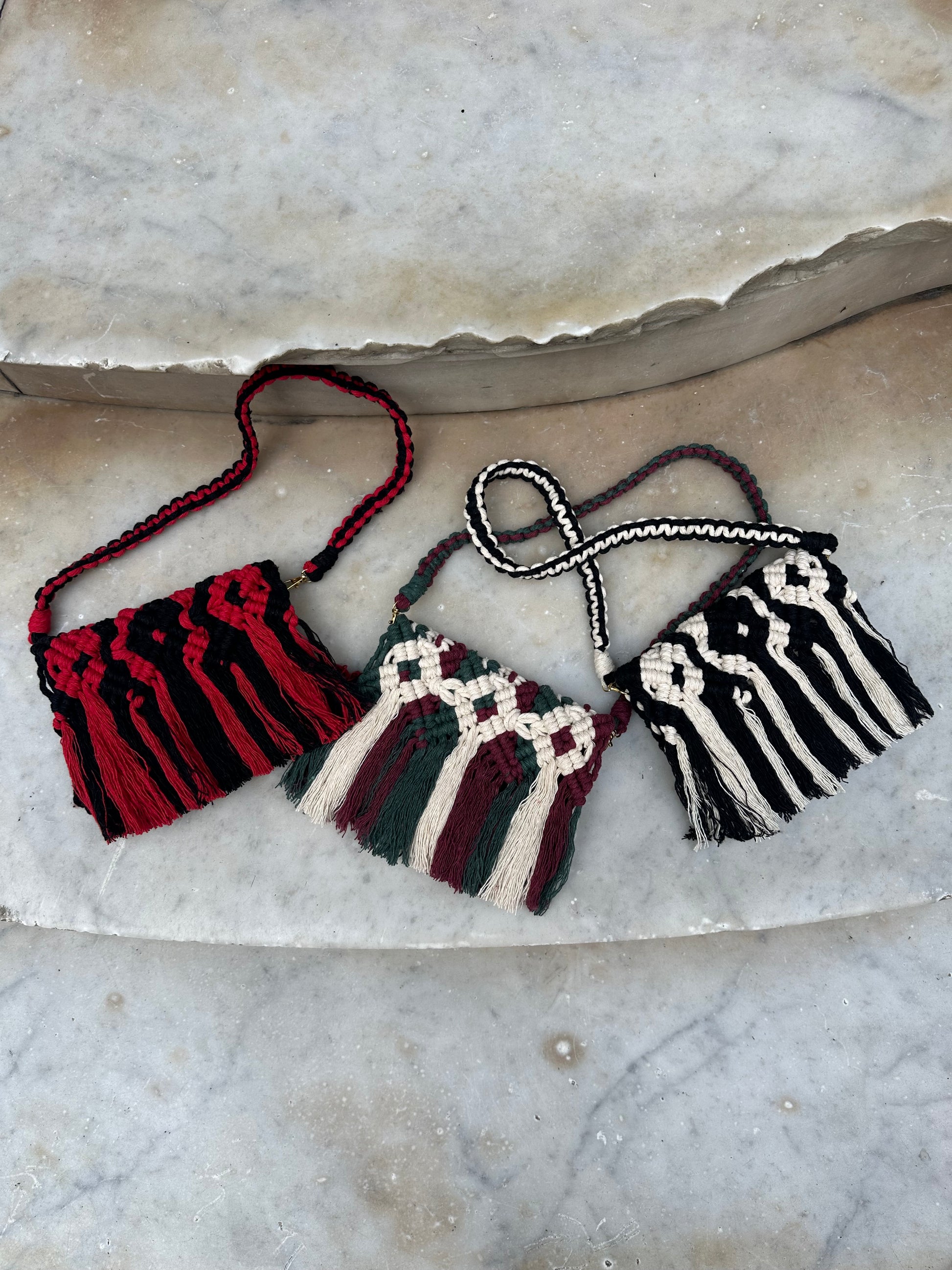 A nossa bolsa Noronha, é cuidadosamente feita à mão , utilizando a técnica do macramê.